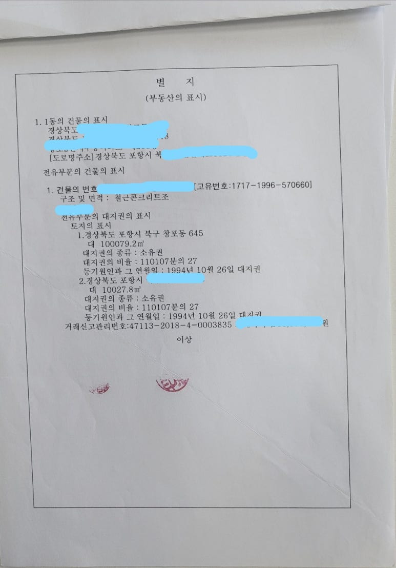- 매도인의 인감도장이 날인된 등기소 제출용도 위임장 1부(매도인 인감도장 필요)