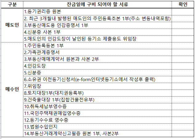 매도인(판매자)과 매수인(구매자)은 각각 필요한 서류를 준비해야 하며,