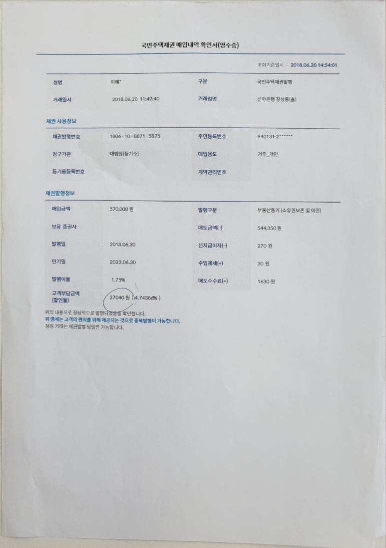 3. 주택도시기금 접속해서 채권매입액 확인하고, 할인해서 차액은 온라인 납도 가능합니다.