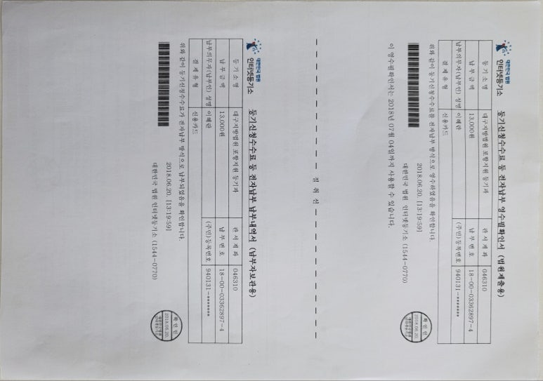 주의사항 : 납부확인증은 1회만 출력이 가능합니다.
