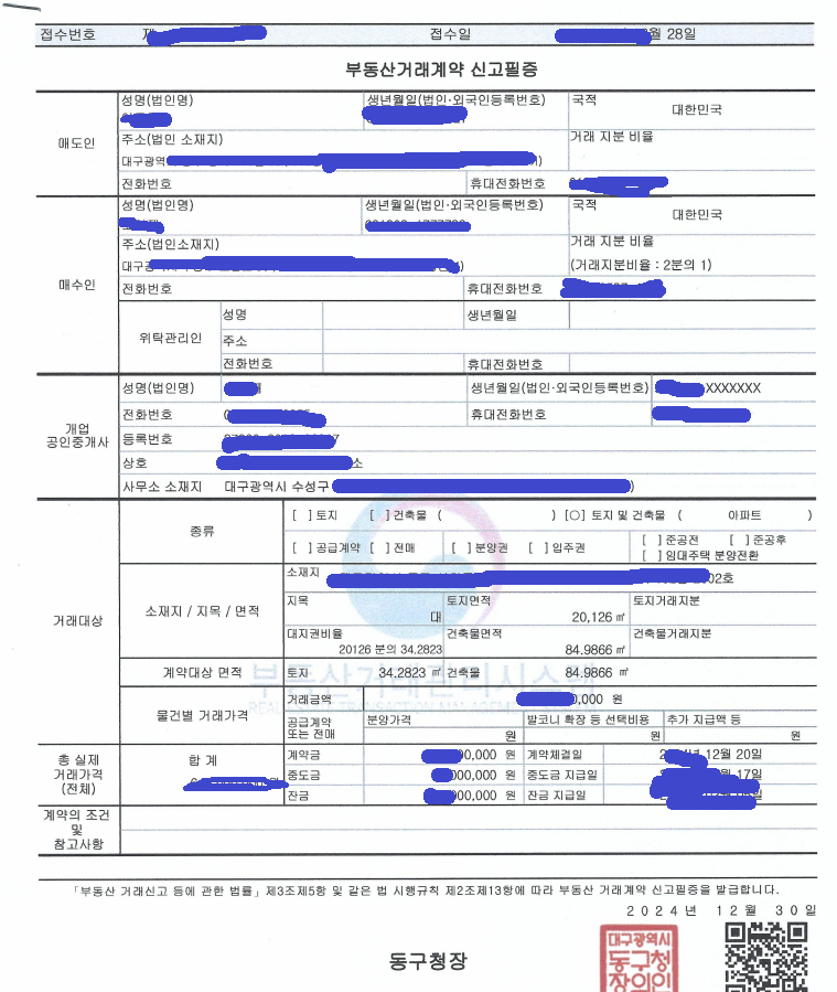부동산 매매시 직거래인 경우는 거래당사자( 매도인과 매수인) 공동으로 신고하시고